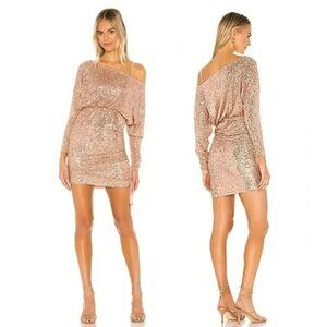 NWT FREE PEOPLE Rose Gold GISELLE Sequin Drawstring Rouche Dress. SZ S