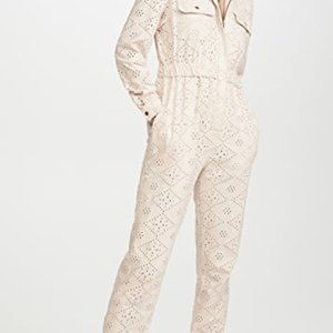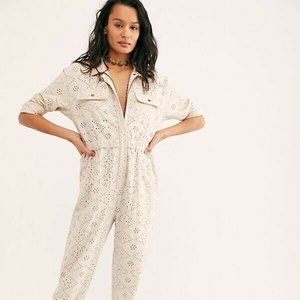 NWT FREE PEOPLE SET THE TONE EYELET JUMPSUIT IVORY