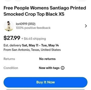 NWT || FREE PEOPLE || Santiago smocked blouse, crop, black, floral, size small