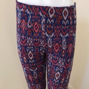 NWT! FREE PEOPLE Size 2 red with blue ikat print pull on pants