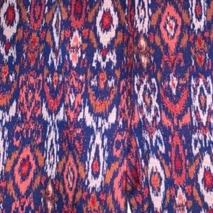 New! Free people Size 2 blue with red multi ikat print pull on pants. Elasticized waist. Back pockets. Soft fabric.