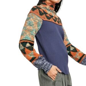 NWT FREE PEOPLE Swit the Small Stuff Mock Neck Sweater Top Navy Combo XL
