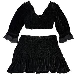NWT FREE PEOPLE Two Piece Velvet Smocked Skirt And Ruffle Puff Sleeve Top SMALL