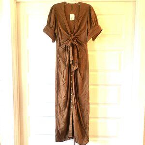 NWT FREE PEOPLE Vintage Summer Midi Dress Button Down Tie Bodice Brownie S