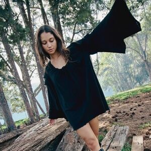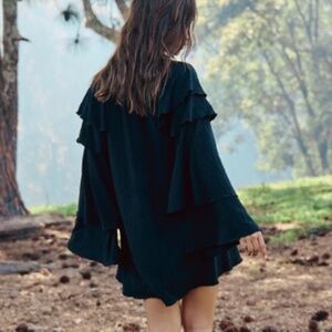 NWT FREE PEOPLE WOMENS CHELSEY MINI DRESS LONG SLEEVE RUFFLE BELL SLEEVE MEDIUM