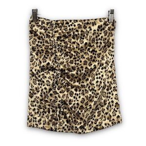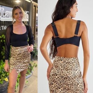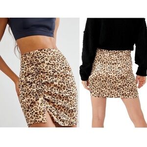 NWT FREE PEOPLE Y2K 90s Satin Leopard Print Ruched Side Slit Pencil Mini Skirt 2