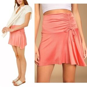 NWT FREE PEOPLE Y2K Coral Ruched Tie Asymmetric Flowy Hem Ballet Mini Skirt XS