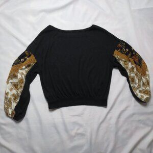 NWT FREE PEOPLE womens SHIRT boho BLACK blouse TOP ribbed CROPPED size M