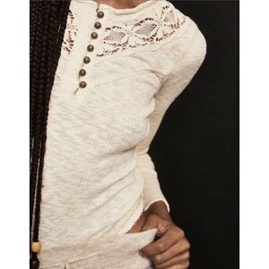 NWT FREE PEOPLE COME ON OVER RIBBED EMBROIDERED HENLEY TOP IN OATMEAL