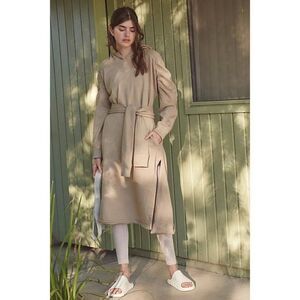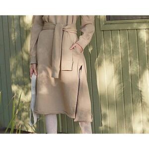 The perfect post-workout pullover featured in an ultra-soft fabrication and knee-length style with a hooded neckline, adjustable belted waist, and side slit detailing.