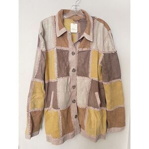 NWT FREE PEOPLE Sz L EDIE CROCHET CHORE LEATHER SUEDE PATCHED SHIRT JACK…