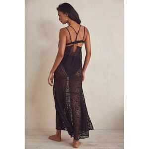 NWT FREE PEOPLE Sz S SUNDOWN MAXI SLIP SHEER LACE DRESS IN BLACK.