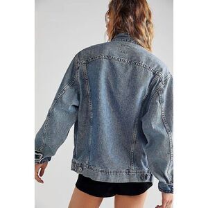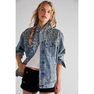 NWT FREE PEOPLE TRICIA FIX Sz S MORGAN STUDDED DENIM JACKET IN BLUE.