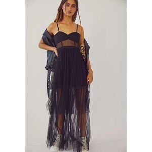 NWT FREE PEOPLE X FAME & PARTNERS Sz 6 FRANCISE TIERED CORSETED DRESS GOWN BLACK