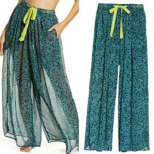 NWT FREE PEOPLE Sleepin' In pajama Swim Pants Size XS Blue Green.