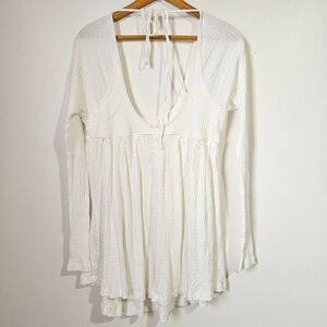 NWT FREE PEOPLE WHITE DEEP SCOOP NECK TOP SIZE M