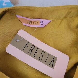 NWT FRESTA Dark Yellow Embroidered Long Slit Tunic