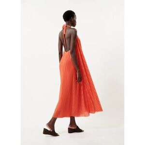 NWT FRNCH Women's Orange Manelle Fluid Cut Crew Neck A-line Dress Size Small