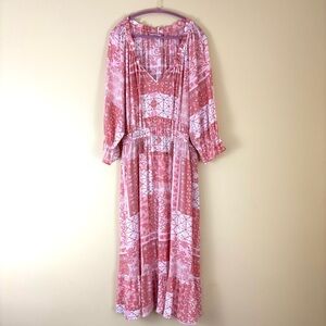 NWT FRYE AND CO. Pink and White Rayon Short Sleeve Ruffled Maxi Sundress (XXL)