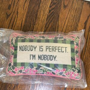 NWT | FURBISH STUDIO | Nobody is Perfect Needlepoint Pillow | 9in x 15in