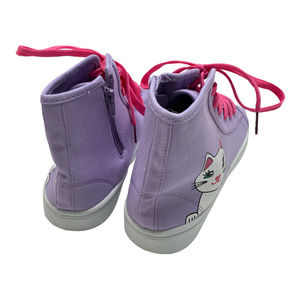 These are FabKids Girl's Purple Cat-Graphic Hi Top Sneakers Size 5