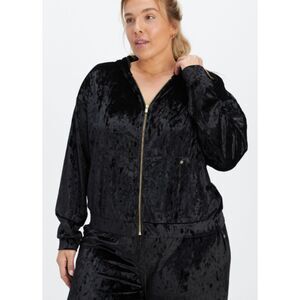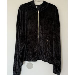 NWT Fabletics Black Crushed Velour Zip Up Hoodie Sweatshirt Sz 3X