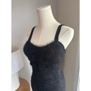 NWT Fabletics Black Faux Mohair 90s Mini Dress Womens Medium Fuzzy Bodycon