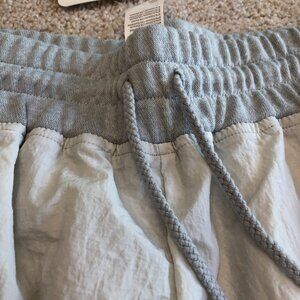 Waistband is a soft gray terry cloth type fabric with drawstring waist.