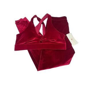 NWT Fabletics Emma Velour Legging and Bra Set Cherry Burst Size XL