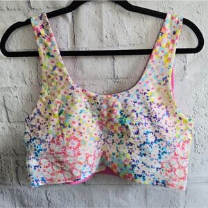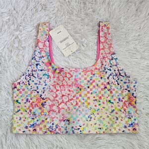 BRAND NEW Fabletics Sports Bra Patchwork Daisy/Marble Pink Reversible Colors.