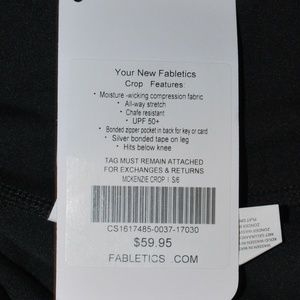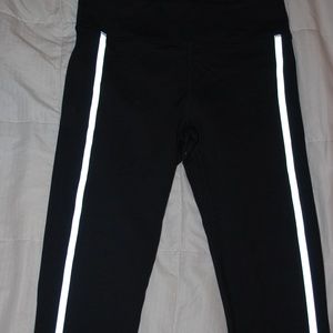 NWT Mckenzie Crop workout pants by Fabletics. Black with reflective silver stripe on sides. Size: Small