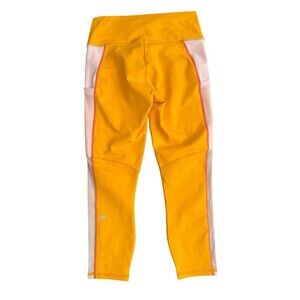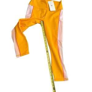 Elevate your activewear collection with these NWT Fabletics On-The-Go Powerhold High-Waisted Capri in size Medium. The colorblock pattern in vibrant orange hues adds a pop of color to your workout wardrobe. The pull-on closure and skinny leg style provide a comfortable and flattering fit for gym and training sessions, yoga, and running and jogging.