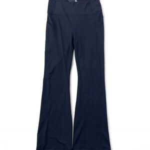 high waisted, flare pants, yogawear, navy blue, stretch fabric, athleisure, workout pants, casual chic, lounge pants, comfortable fit
