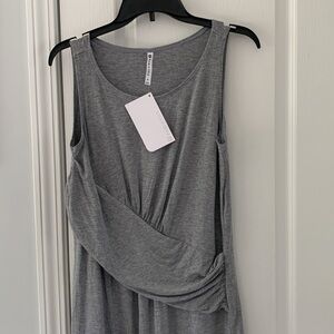 NWT Fabletics Retta Midi Dress gray casual sleeveless silky soft jersey drape