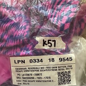 NWT, Fabletics, Reversible Mid-Rise Swim Bottom, Pink and Blue, XXL/1X