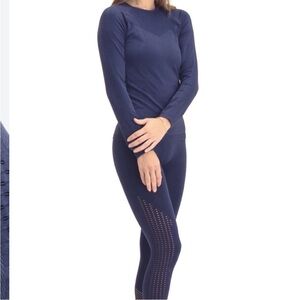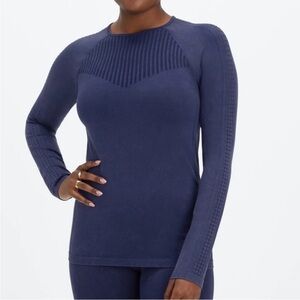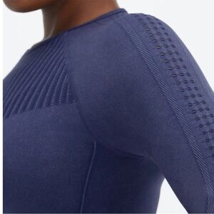 NWT Fabletics Sync Seamless Long Sleeve Laser Cut Active Top Washed Deep Navy