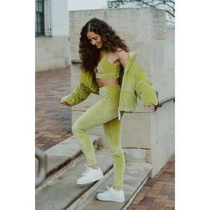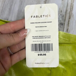 Keywords: Fabletics, green leggings, women's leggings, size 6, ankle leggings, high-waisted, plush velour, casual wear, soft leggings, machine washable, Emma Velour, comfortable leggings, new with tags, NWT, women's fashion