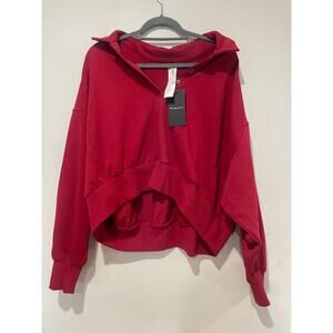 NWT Fabletics Year Round Terry Snap Front Long Sleeve Sweatshirt Holly Berry L