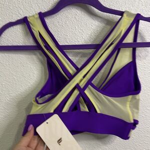 NWT- Fabletics-Faye Medium Impact Sports Bra- Berry Kiss/Lemon Crème-Size XS