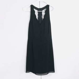 V-neck halter style cocktail dress with small seam at waistline and zipper closure to back.