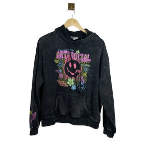 NWT Faded Rose Oversized Graphic Smiley Colorful Hoodie in Charcoal/Multi Size S