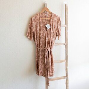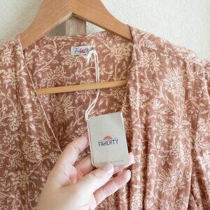 NWT Faherty Ashley Dress Women’s Size Medium Brown Floral 100% Linen Wrap Belted