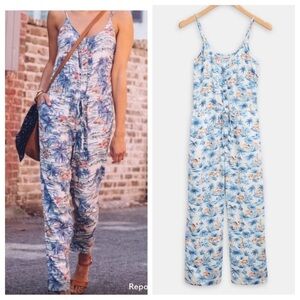 Faherty blue and white tropical pattern jumpsuit. Inseam 24”. New without tags!