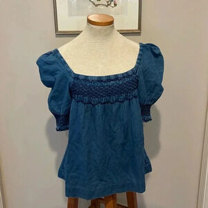 NWT!! Faherty - Presley Embroidered Detail Cotton Chambray Top Dark Indigo Wash - Size Small
