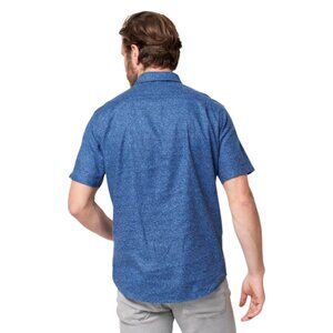 Elevate your summer wardrobe with this brand-new, tags-on Faherty Short Sleeve Breeze Shirt in the vibrant Horizon Blues Frond Print (MWS2221, Size Large). Crafted from a luxurious, eco-conscious blend of 53% hemp, 45% lyocell, and 2% elastane, this shirt offers a buttery-soft feel with lightweight breathability and a touch of stretch. The custom hemp-based fabric enhances the coastal-inspired frond print with a natural, textured finish, perfect for sunny days and laid-back adventures.