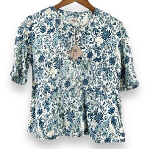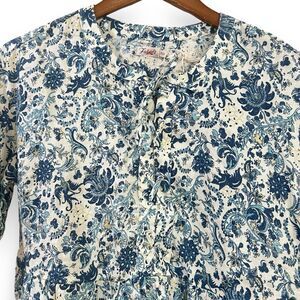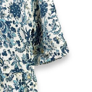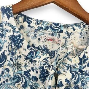 Faherty Womens Salinas 100% Linen Top Blouse XS Aviary Blue Floral Paisley.