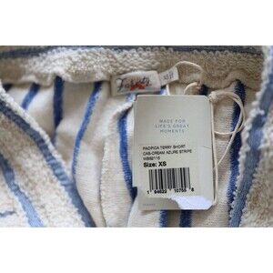 NWT Faherty Womens XS Azure Cream Stripe Pacifica Terry Shorts Boho Beach Lounge