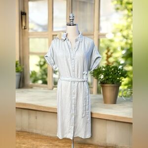 NWT Faherty Button Down $188 linen Tried & True Breeze Shirtdress Icy Blue Wash