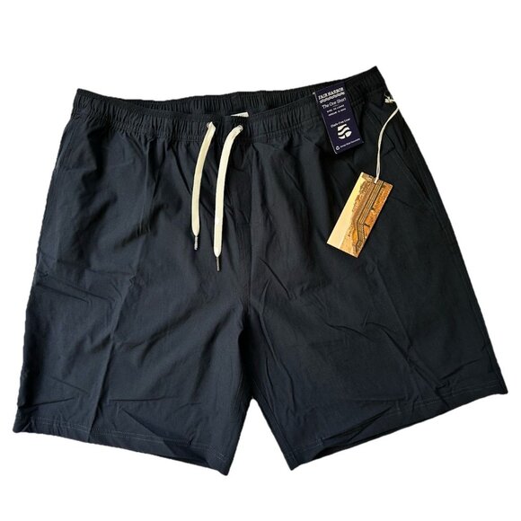 The NWT Fair Harbor The One Shorts in men's size 3X navy are unlined casual trunks perfect for outdoor activities or casual occasions. Made from a blend of polyester and spandex, these shorts feature a drawstring closure, flat front, and a zipper accent with the brand's logo. The stretchy material ensures a comfortable fit, while the lightweight design makes them easy to wear all day. With slash pockets and a sporty preppy style, these shorts are a versatile addition to any man's wardrobe.