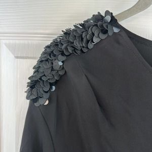 NWT Faith Connexion Womens Sz L Black 100% Rayon Asymmetrical Sequins Midi Sheath Shirt Dress